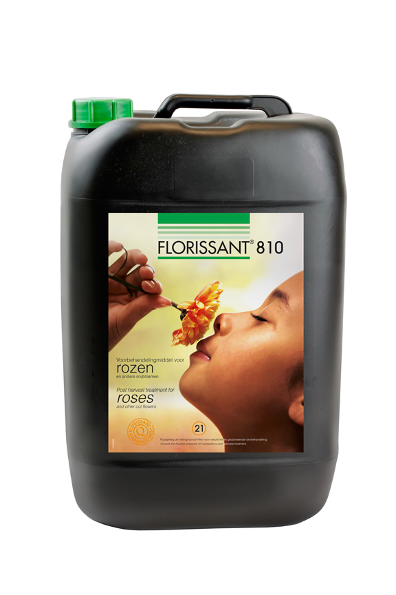Put freshly harvested flowers immediately on the solution for a minimum of 4 hours, there is no maximum treatment time. For: Rose, Hydrangea, Astilbe, Gypsophila, Aster and many other flowers (except for Anthurium, Gerbera and Helianthus). Florissant 810 is an essential part of the treatment for Gypsophila in hot rooms, for more information request the Florissant post harvest protocol for Gypsophila. Florissant 810 is the aluminium free alternative treatment for Rose and Hydrangea