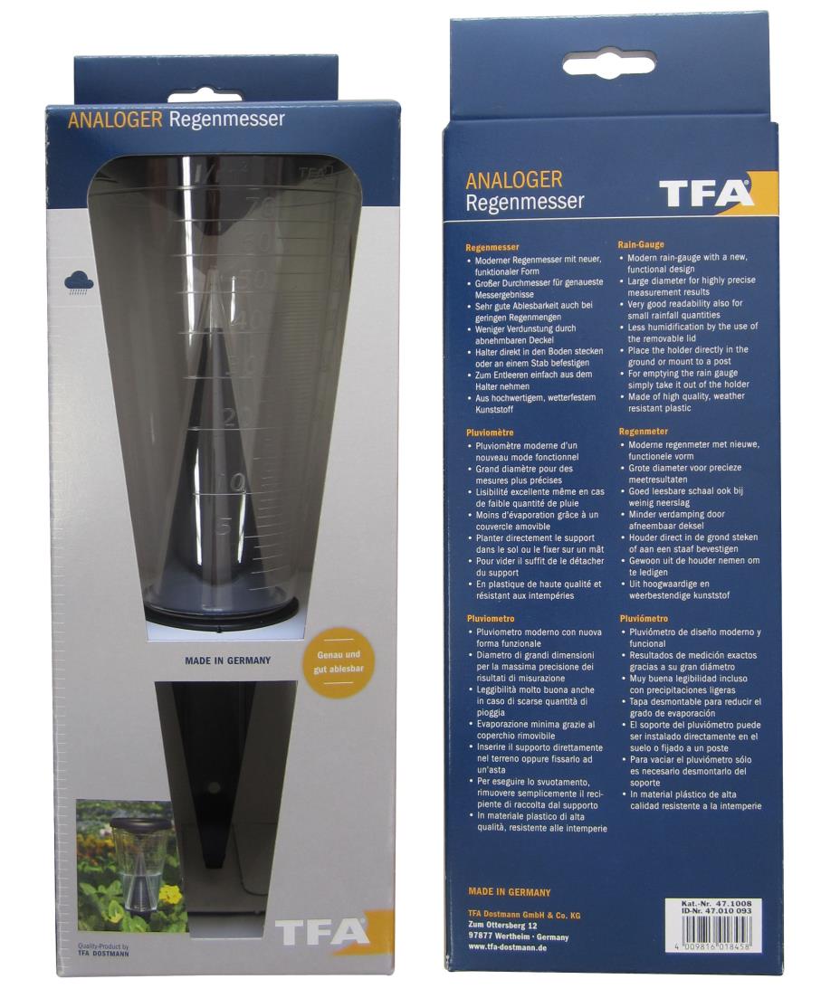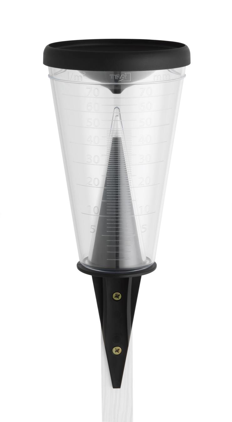 A modern rain gauge with a new, functional design made of weatherproof plastic for simple and accurate determination of rainfall. Due to the large diameter you get very accurate measurements and the scale is easy to read even in low precipitation. The funnel-shaped lid protects against evaporation.